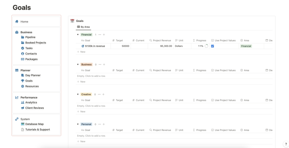 Leads & Project Tracker - Keep track of your creative projects, contacts, and clients with this view. It's designed to show the status of all your projects so that you can easily stay on top of your business